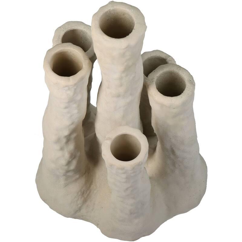 Deze unieke bloemenhouder in koraalvorm is een echte blikvanger in je interieur. De organische vorm en ecru kleur geven een rustieke, natuurlijke uitstraling. Perfect voor droogbloemen of decoratieve takjes.