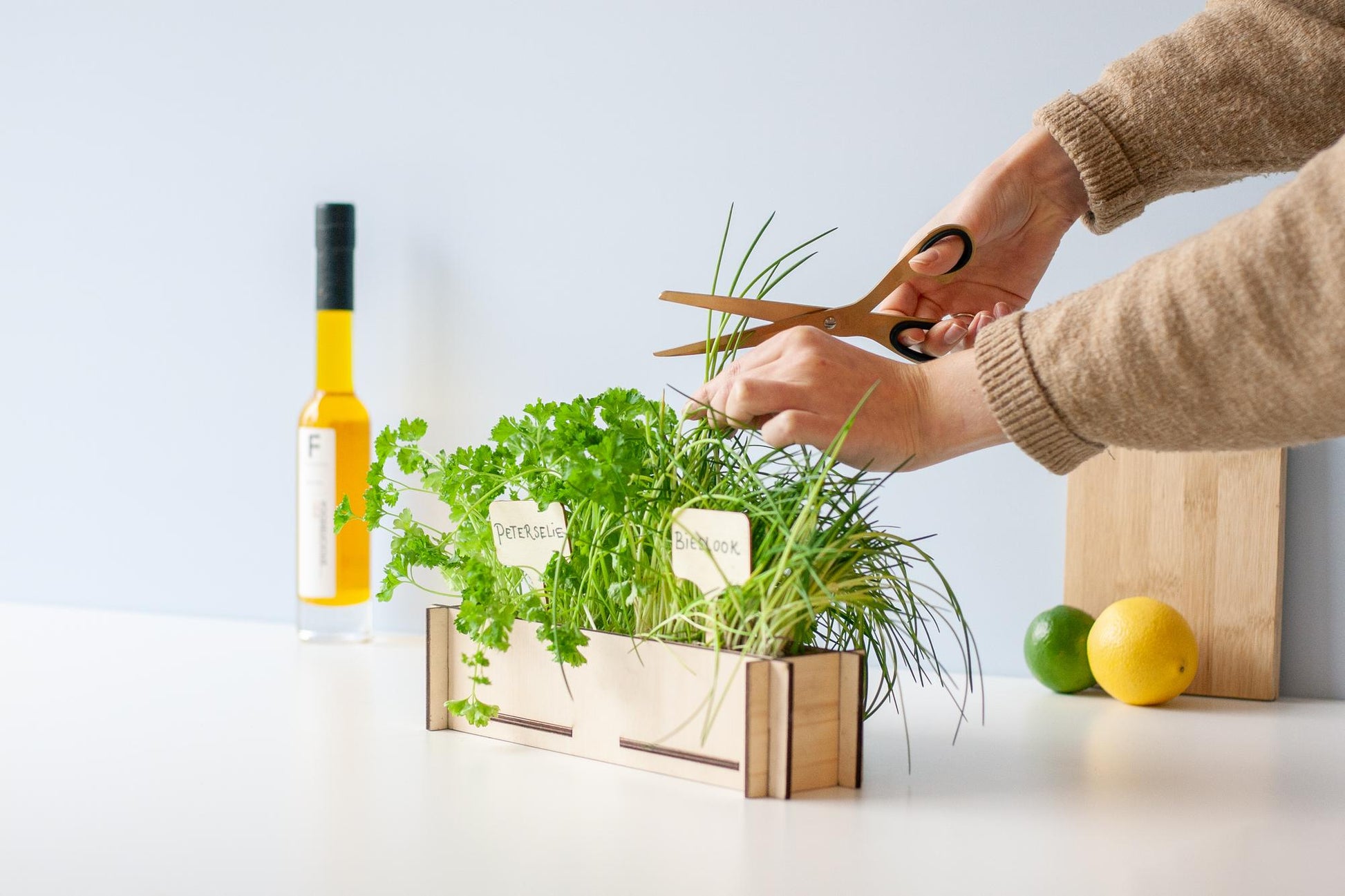 Op zoek naar een origineel lente cadeau? Dit Kruidentuintje past perfect door de brievenbus en brengt groen plezier bij de ontvanger! In het pakket zitten peterselie- en bieslookzaadjes, samen met een stijlvol houten bakje om de kruiden in te kweken. Een sfeervolle toevoeging aan elke keuken!