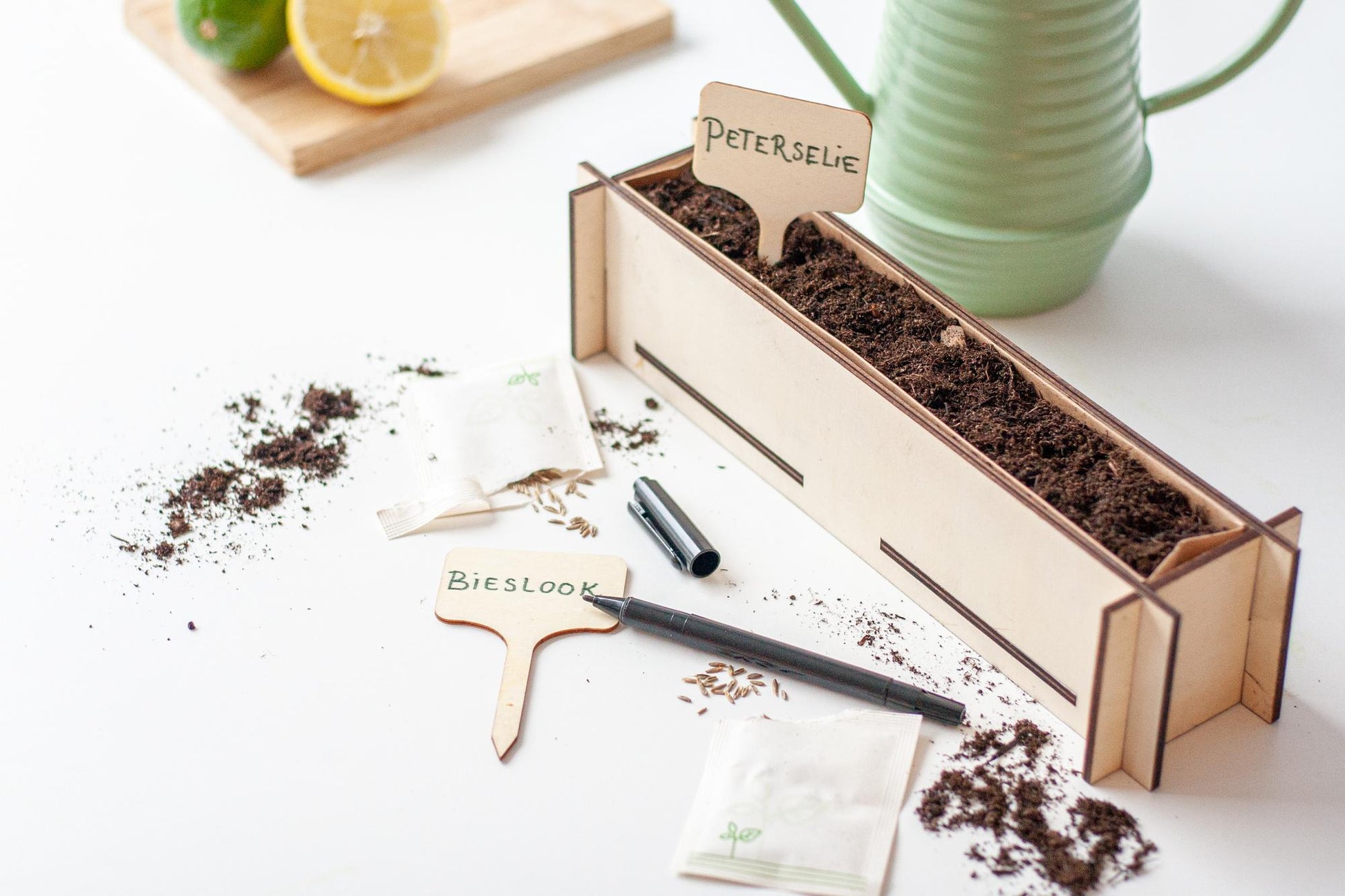 ✔ 2 houten naamstekers – handig om je kruiden te labelen.
